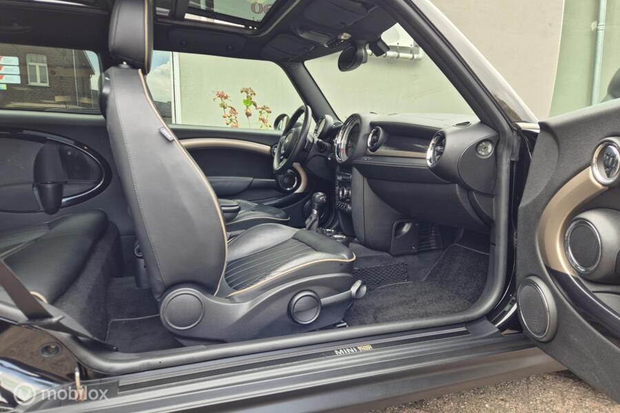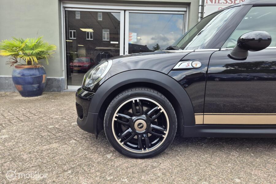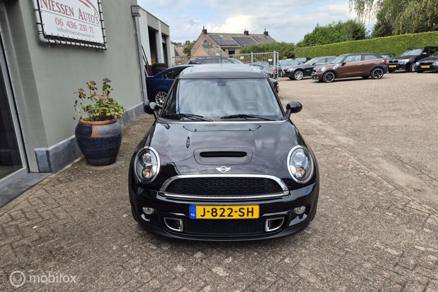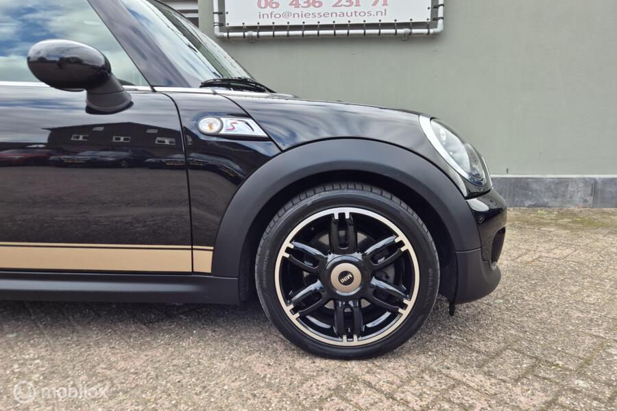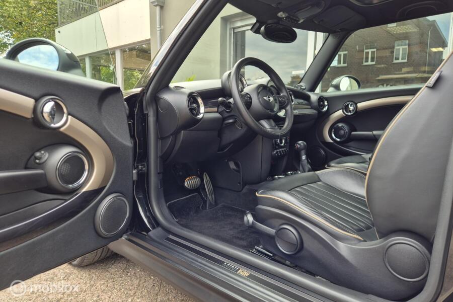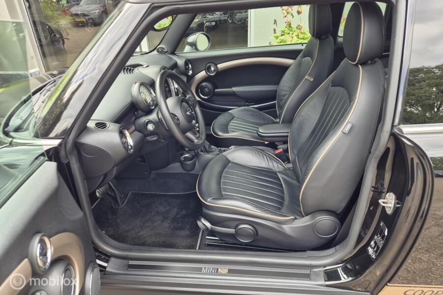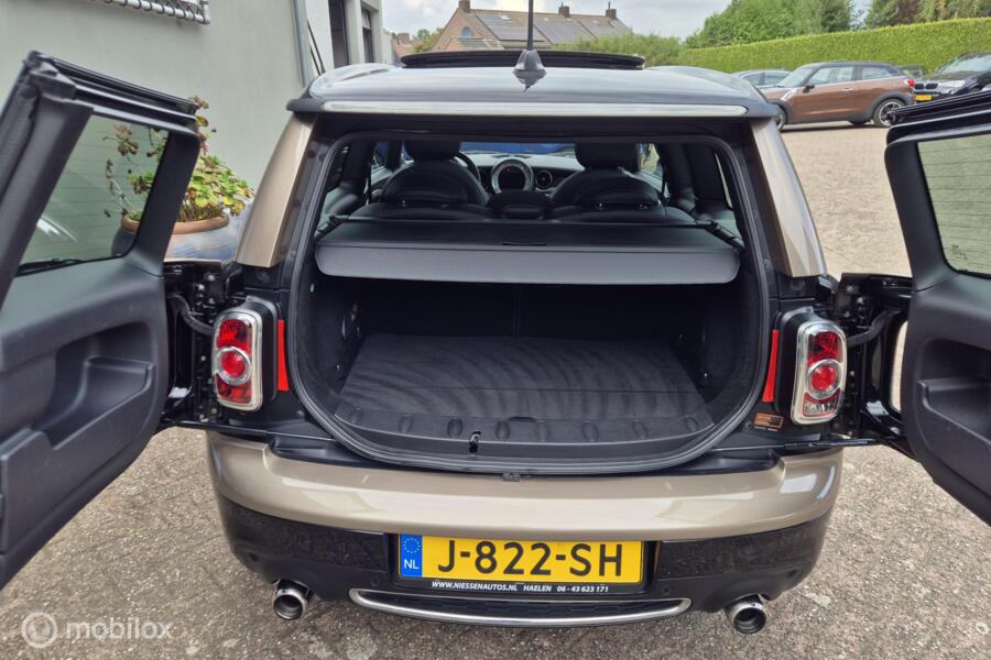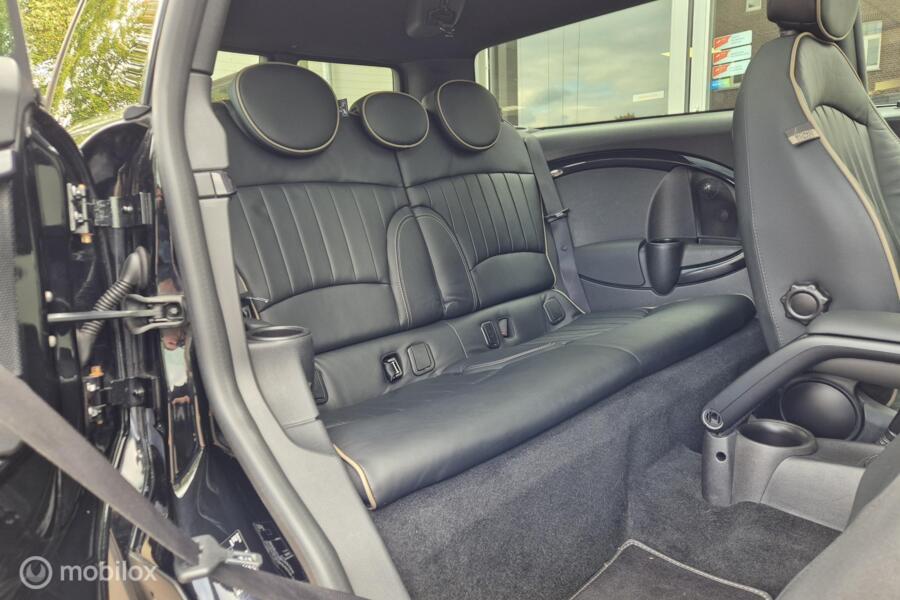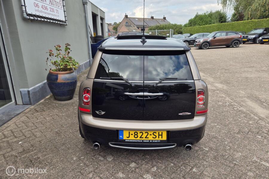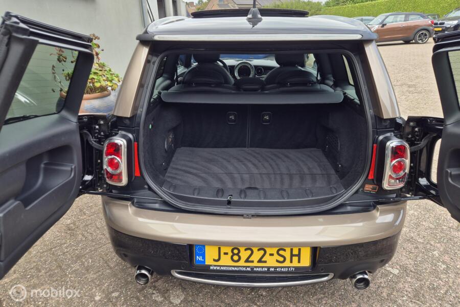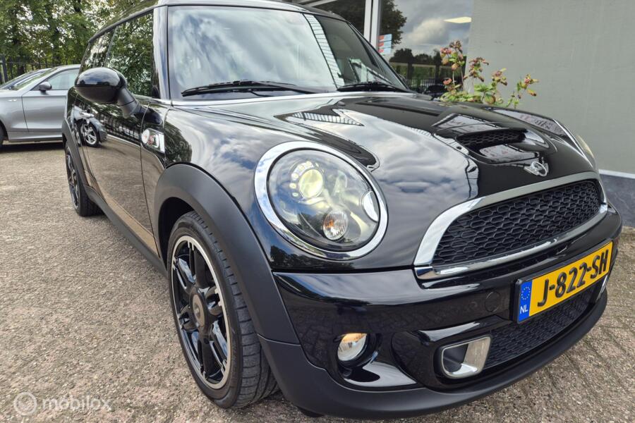 Mini R55 Facelift Cooper S Clubman Bond Street Edition aangeboden. De Mini is uitgevoerd in de stoere kleur Midnight Black Metallic die het samen met de Accenten in de kleur Cool Champagne & 17 inch Twin Spoke velgen in dezelfde kleurcombinatie een zeer sportieve verschijning maakt. Qua interieur is er gekozen voor een lederen sport interieur incl stoelverwarming & lederen dashboard. Om het af te maken is de Mini voorzien van een antraciet kleurige dak hemel incl panoramadak. Motorisch is de MINI voorzien van de 184pk N18 motor die gekoppeld is aan automatische versnellingsbak incl schakelflippers aan het stuur. Recent is de Mini voorzien van een onderhoudsbeurt incl nieuwe klepsteelrubbers. De complete onderhoudshistorie & Nationale Autopas (NAP) zijn aanwezig. Enkele verdere opties van deze "Bond Street Edition" uitvoering zijn: Sport Onderstel, Glasdak, Xenon verlichting, Parkeersensoren achterzijde, Vlakke Laadvloer, Verduisterde ruiten, HiFi-systeem Harman Kardon, Regeling Combox, Navigatiesysteem etc.